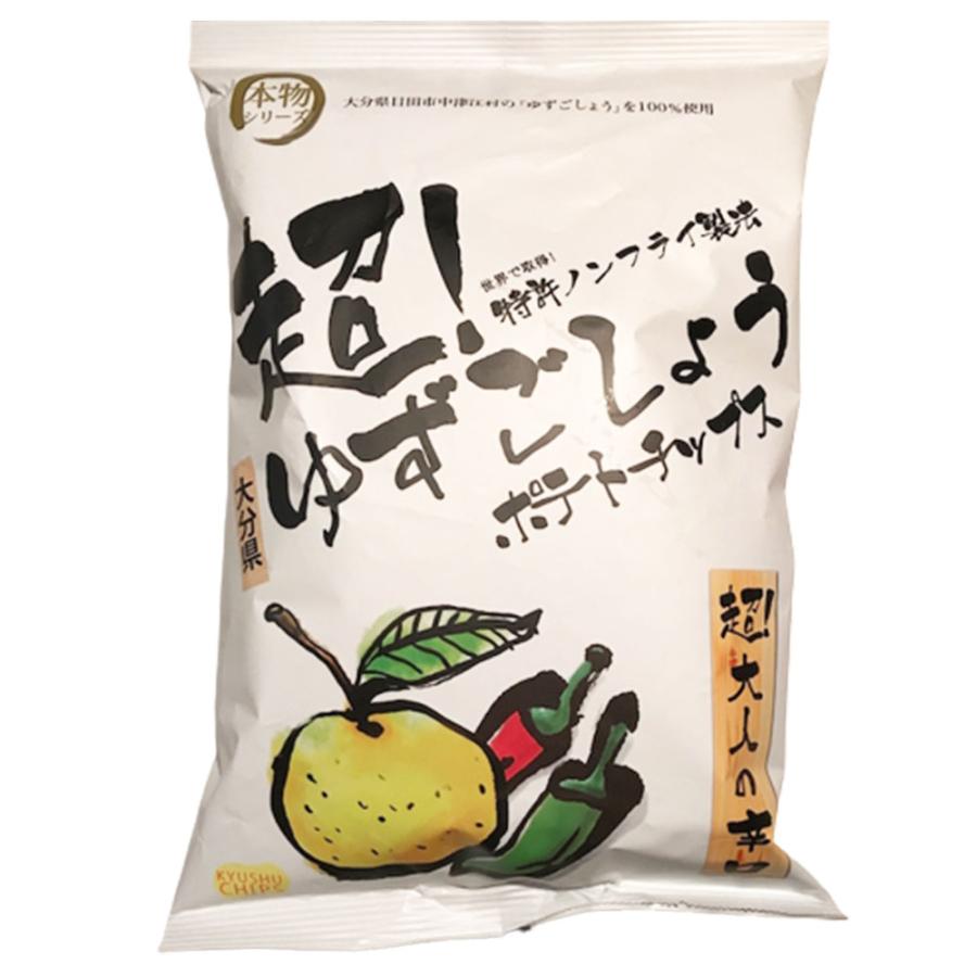 「超!ゆずこしょうポテトチップス」は、大分名産の柚子胡椒を贅沢に使い、爽やかな香りと辛味が特徴です。